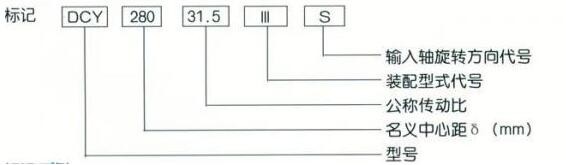 名義中心距為280mm,公稱(chēng)傳動(dòng)比為31.5,裝配型式第Ⅲ種,輸入軸順時(shí)針?lè)较蛐D(zhuǎn)的三種傳動(dòng)減速器標(biāo)記為DCY280-31.5-ⅢS。