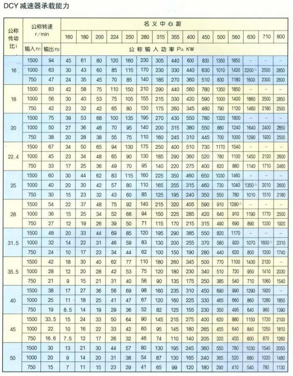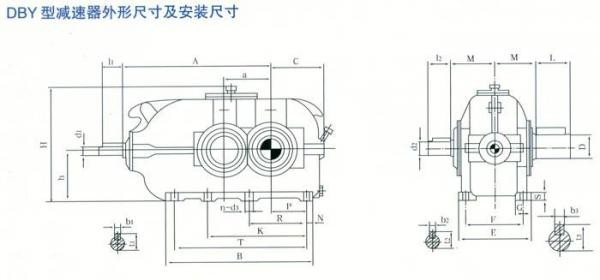 DBY型為二級(jí)傳動(dòng),DCY型為三級(jí)傳動(dòng)。DBY型和DCY型傳動(dòng)為格里森弧齒錐齒輪,二、三級(jí)傳動(dòng)為漸開(kāi)線(xiàn)圓柱斜齒輪。