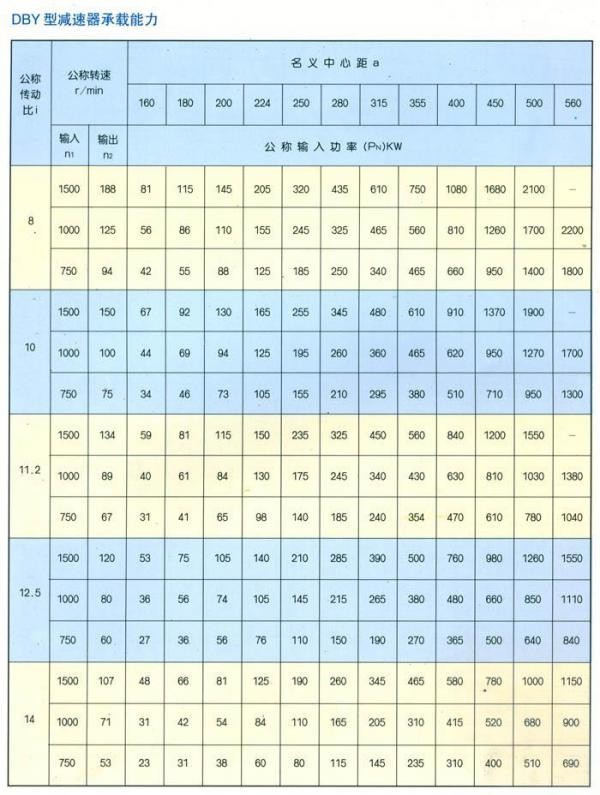 DBY型減速器公稱(chēng)傳動(dòng)比與實(shí)際傳動(dòng)比
